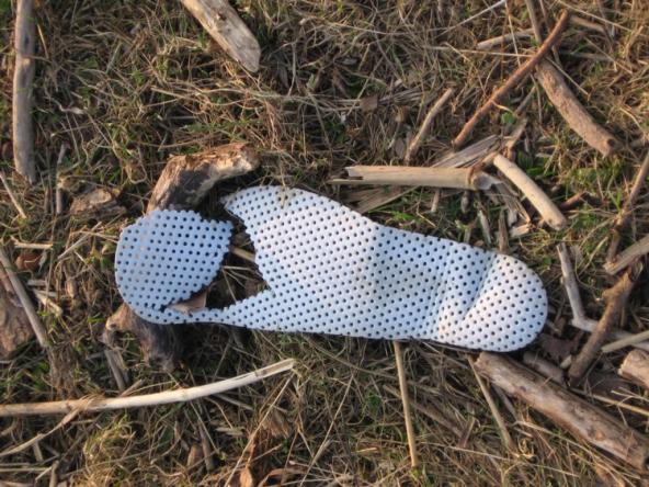 Nicht nur dass diese Sohle ohnehin fast nur aus Löchern besteht - nun hat sie auch noch einen Riss.