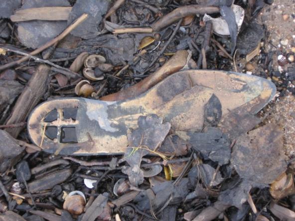 Die Form dieser Sohle verrät, dass sie mal zu einem Frauenschuh gehörte.