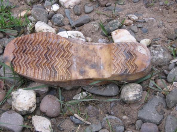 Sohle mit kleinem Rest vom Schuh und wellenförmigen Profil