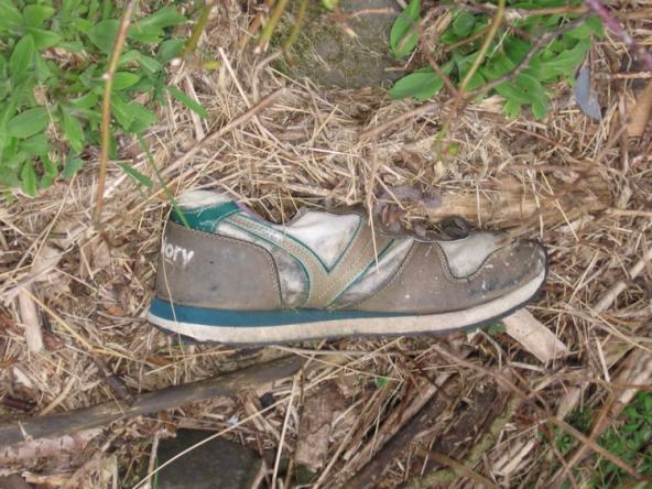Hier schlecht zu sehen, aber die linke Schuhseite ist schon fast ganz weg