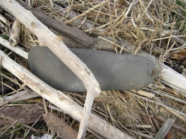 schwarze Sohle in frisch gewaschenem Treibholz