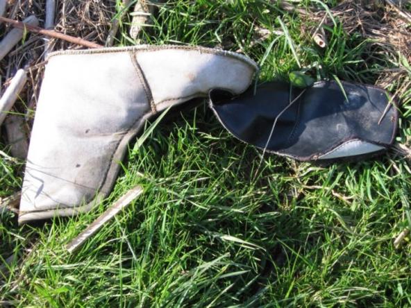 Weißer Innenschuh der wohl zu einem schwarzen Stiefel gehört.