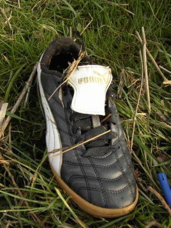 Qualitätsfußballschuh, noch völlig durchnäßt
