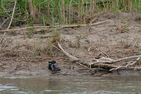 Beschreibung: Eine echte Rheinschuhfotografin kennt da keine Gnade: der Erweller Rheinschuh wurde nach vorheriger Erwähnung von www.rheinschuh.de während einer Exkursionsfahrt mit vielen Teilnehmern in einem kleinen Boot von einem derselben entdeckt und von mir mit einem für diesen Zweck völlig unzureichenden 28 – 70 mm - Objektiv fotografiert. Wegen der Winzigkeit habe ich dann einen Bildausschnitt gemacht. Man sieht: die Werbung für diese Seite hatte wieder einmal Erfolg.