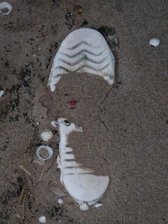 graue Gummisohle mit Wellenschliff im Sandbett