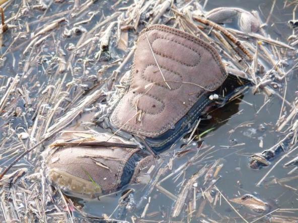 schwimmt noch ein wenig im Treibholz hin und her und kann sich noch nicht für den Landgang entscheiden