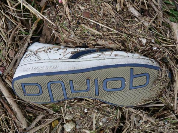 Tennisschuh im Strohbett