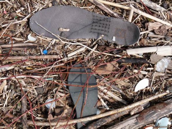 2 Sohlen in einem riesigen Haufen angeschwemmten Zeugs