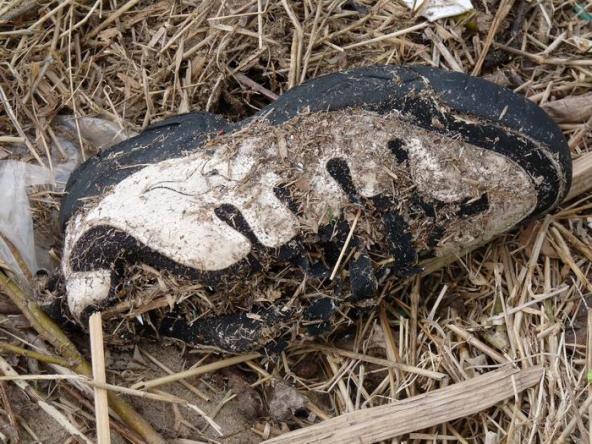 das ganze Kleinzeug hat diesen Schuh total verklebt