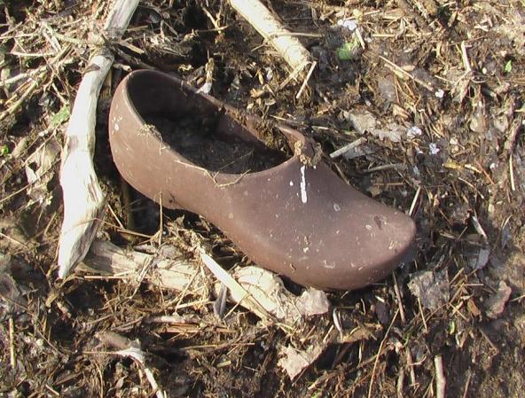 Zeitloser Designerholzschuh aus braunem unverwüstlichen Kunststoff.