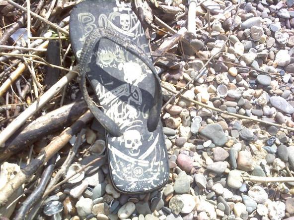 Flip-Flop mit interessantem Aufdruck...BOC, Säbel, Totenkopf in der Größe 38