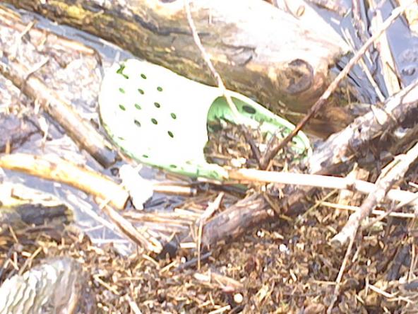 Moderner hellgrüner Clog im leicht beschädigtem Zustand