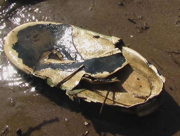 Zerfallener Halbschuh aus einem gummiartigem Material