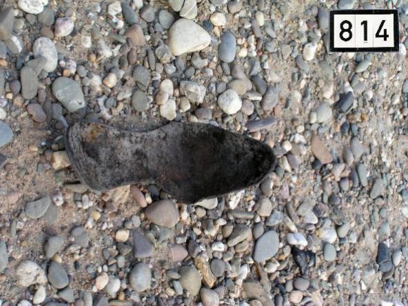 Stark gebogene Sohle im Kies.