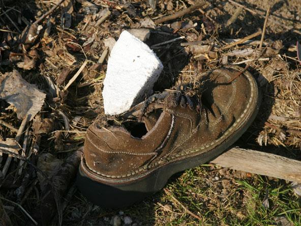 Geparkt neben einem Stückchen Styropor fristet dieser schöne Halbschuh im abendlichen Sonnerlicht sein Dasein